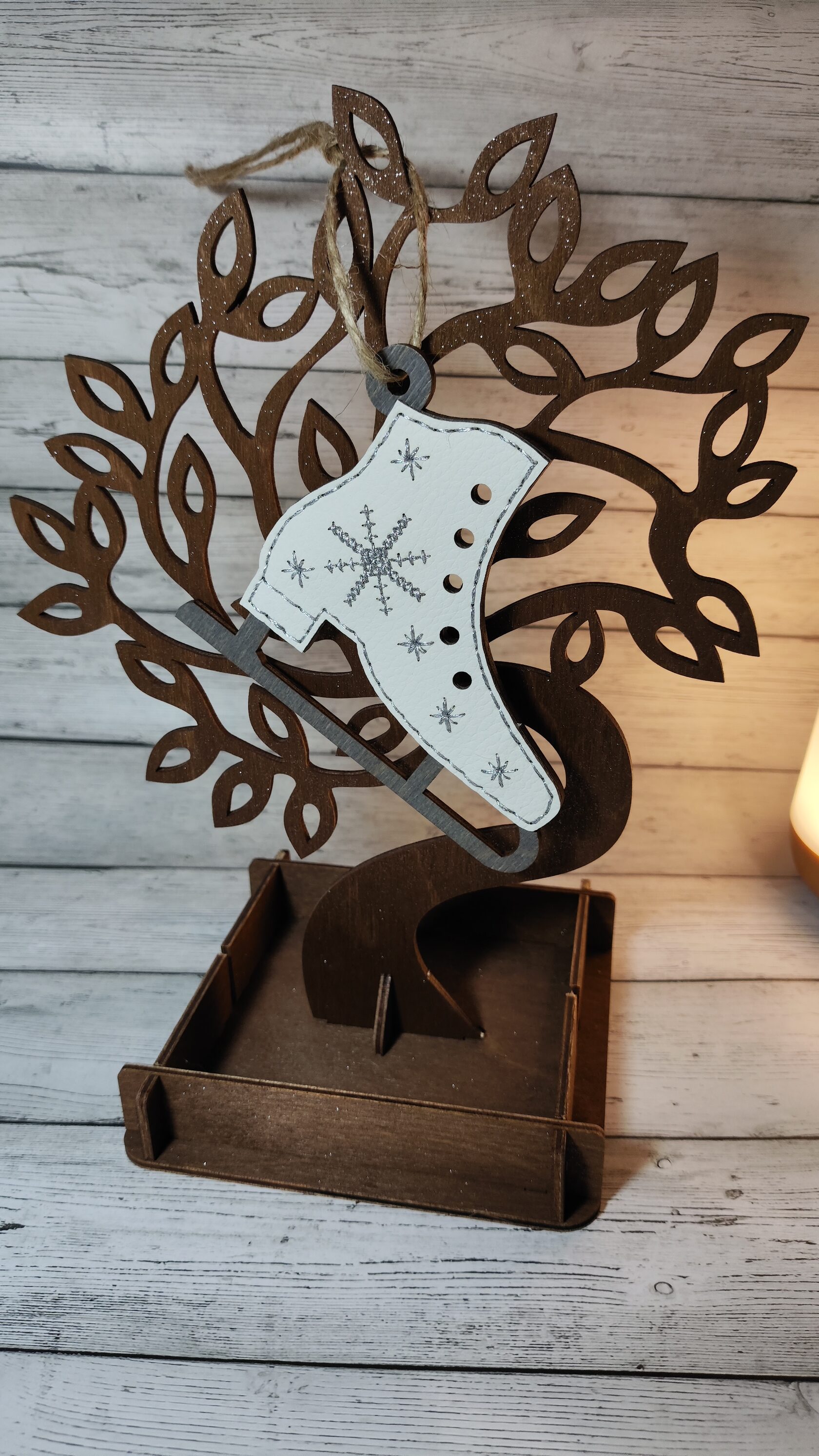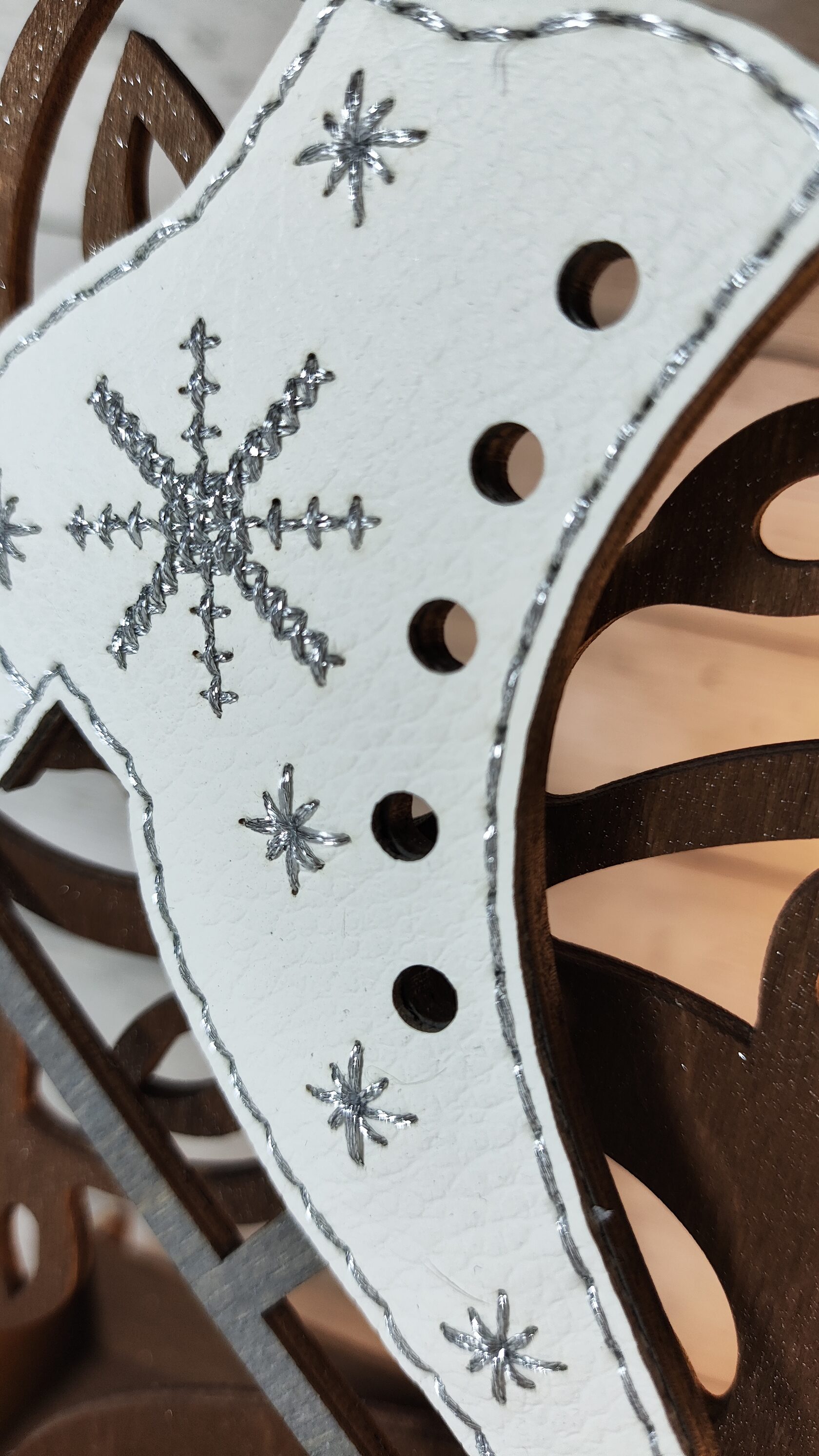 ✨ Почему этот Конек должен украсить вашу елку? 1. Уникальное Сочетание: Дерево, экокожа и вышивка – это необычное и очень модное сочетание, которое выделяет игрушку среди традиционных украшений. 2. Атмосфера Зимы: Конек – символ зимних забав, льда и праздничного настроения. Он добавит нотку ностальгии и уюта в ваш интерьер. 3. Идеальный Подарок: Прекрасный сувенир для любителей зимних видов спорта, коллекционеров необычных елочных игрушек или просто тех, кто ценит тепло ручной работы. 4. Долговечность: Благодаря прочной деревянной основе и износостойкой экокоже, этот Конек прослужит вам многие годы.