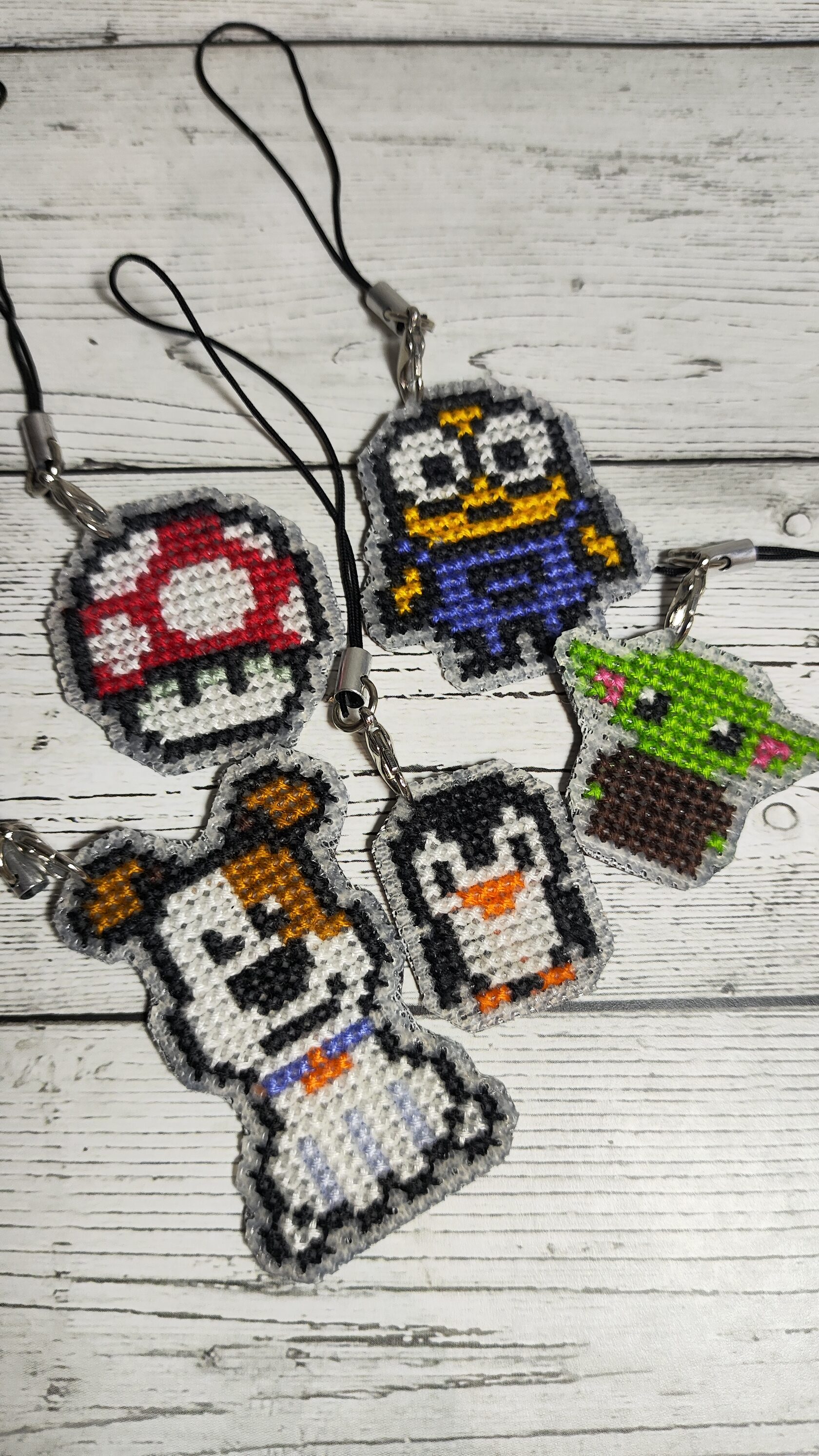 • Две стороны: Украшены миниатюрной вышивкой крестом, изображающей самых милых и забавных персонажей: веселых животных или любимых героев мультфильмов, • Фурнитура: Брелок оснащен карабином, его можно прикрепить к ключам, мобильному телефону, сумке, рюкзаку или пеналу.
