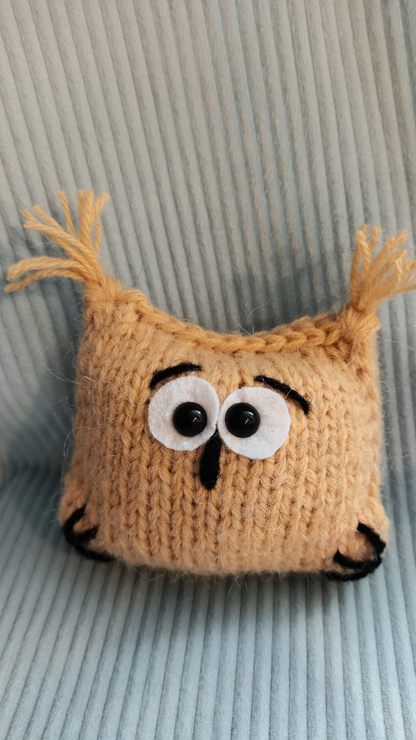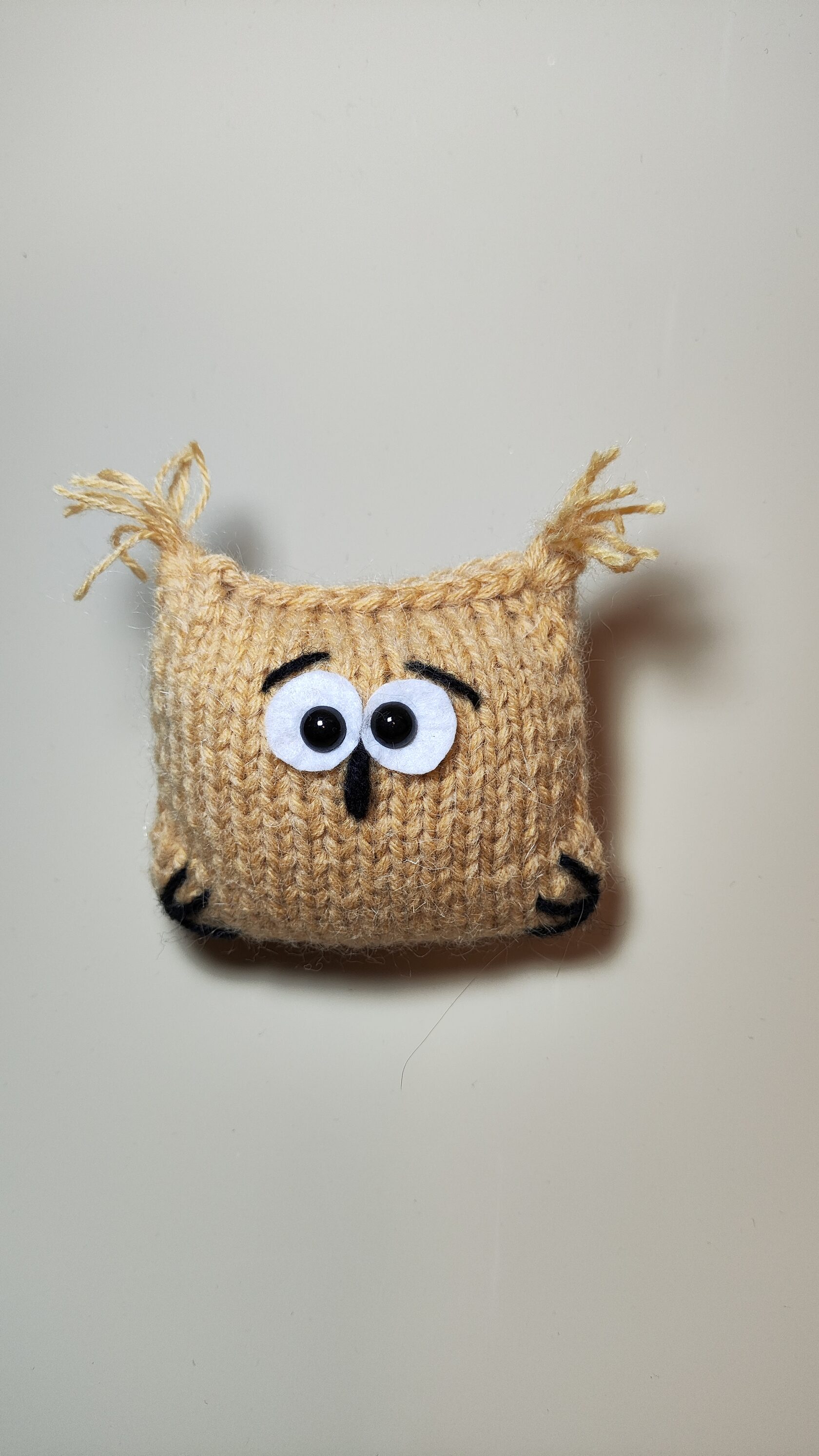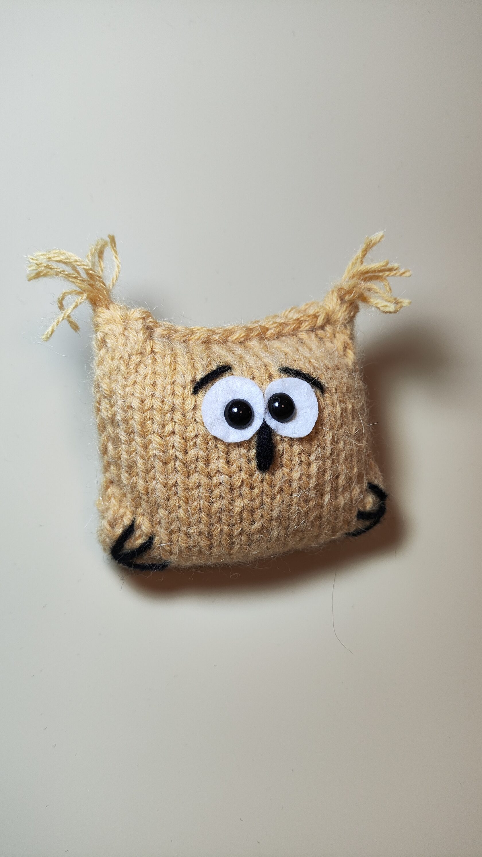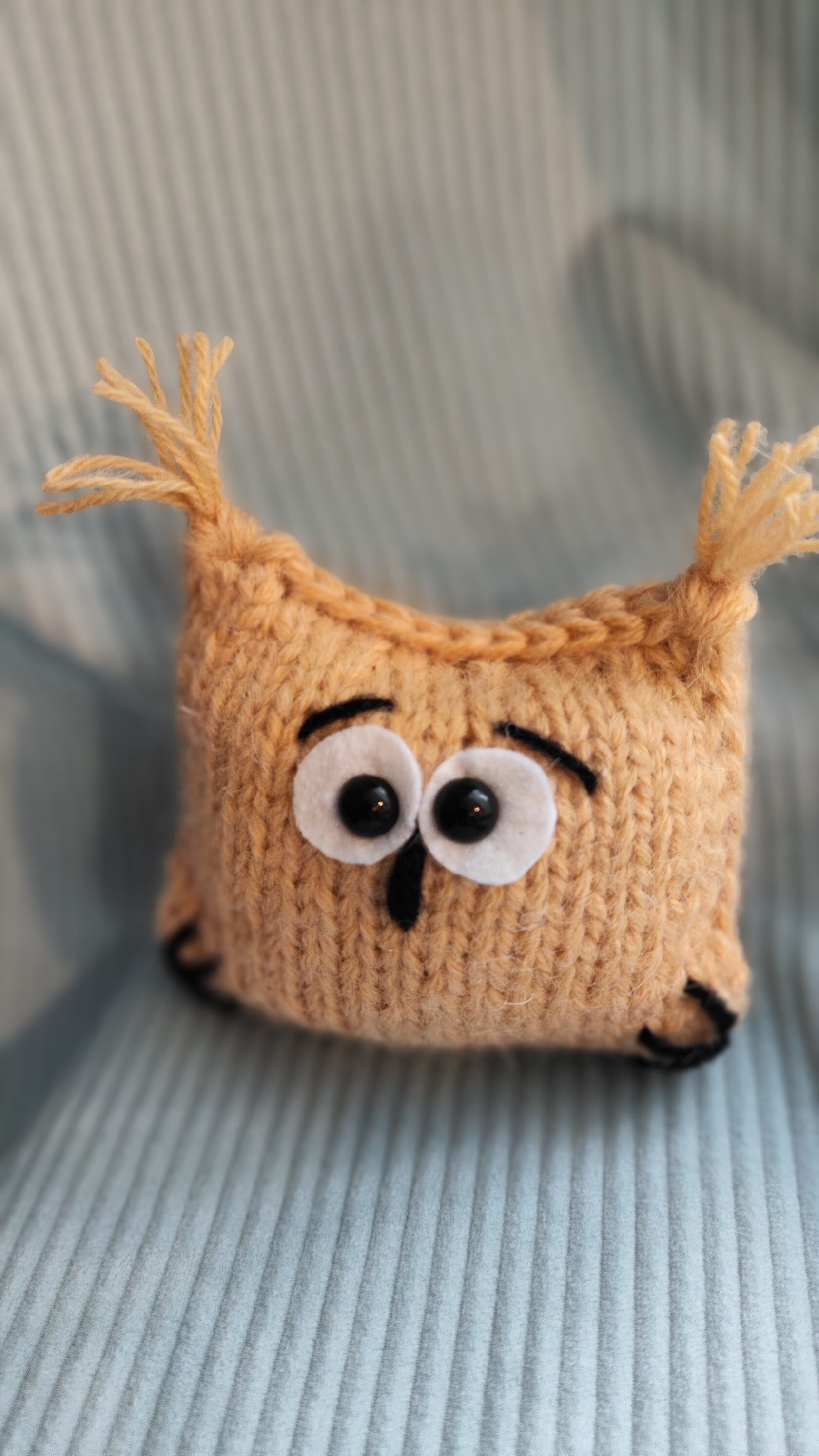 Этот вязаный совёнок по имени Кнопа – мягкий, уютный и невероятно милый! Связанный вручную с любовью и вниманием к деталям, он станет верным другом для вашего ребенка и прекрасным украшением интерьера.