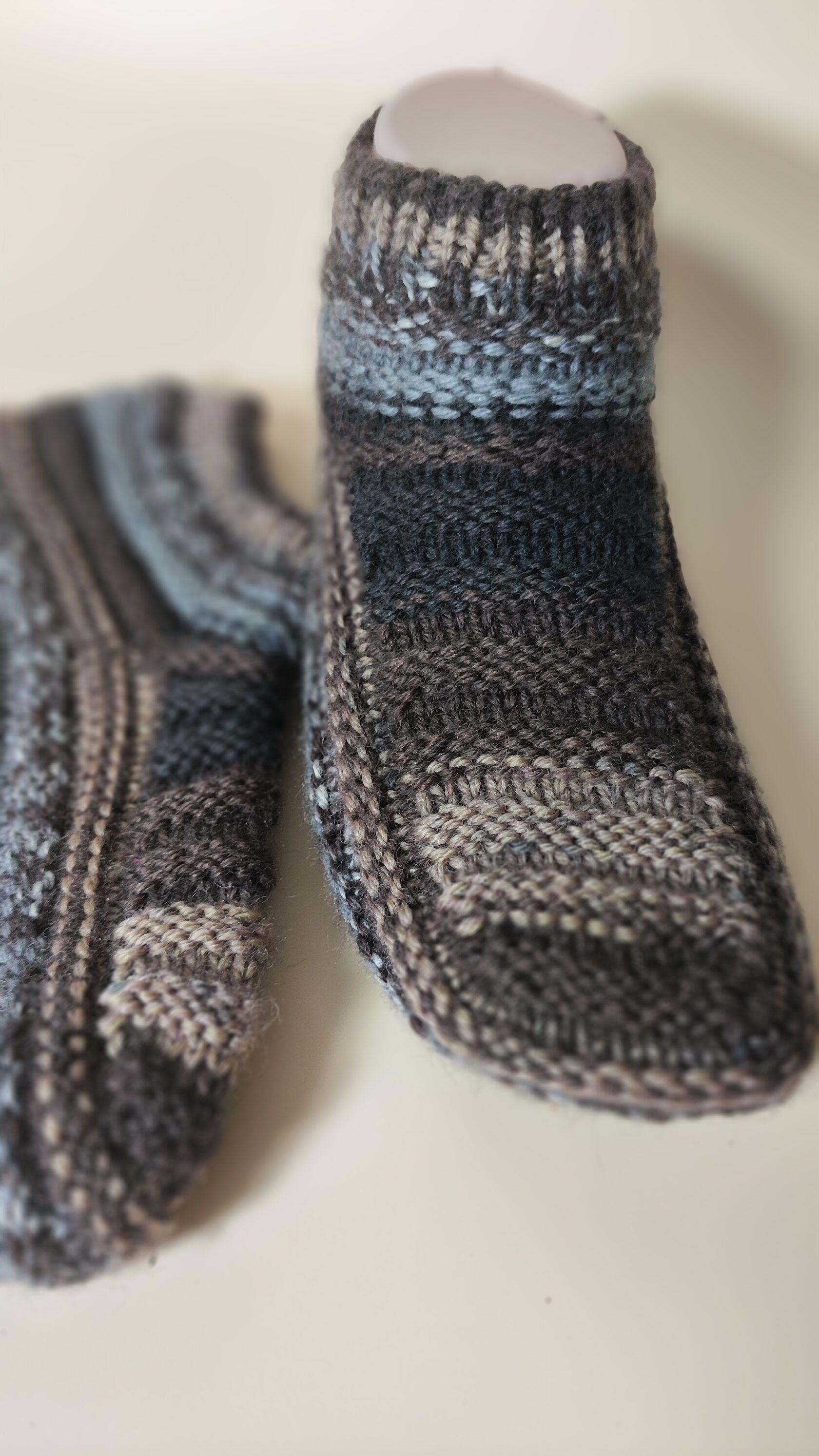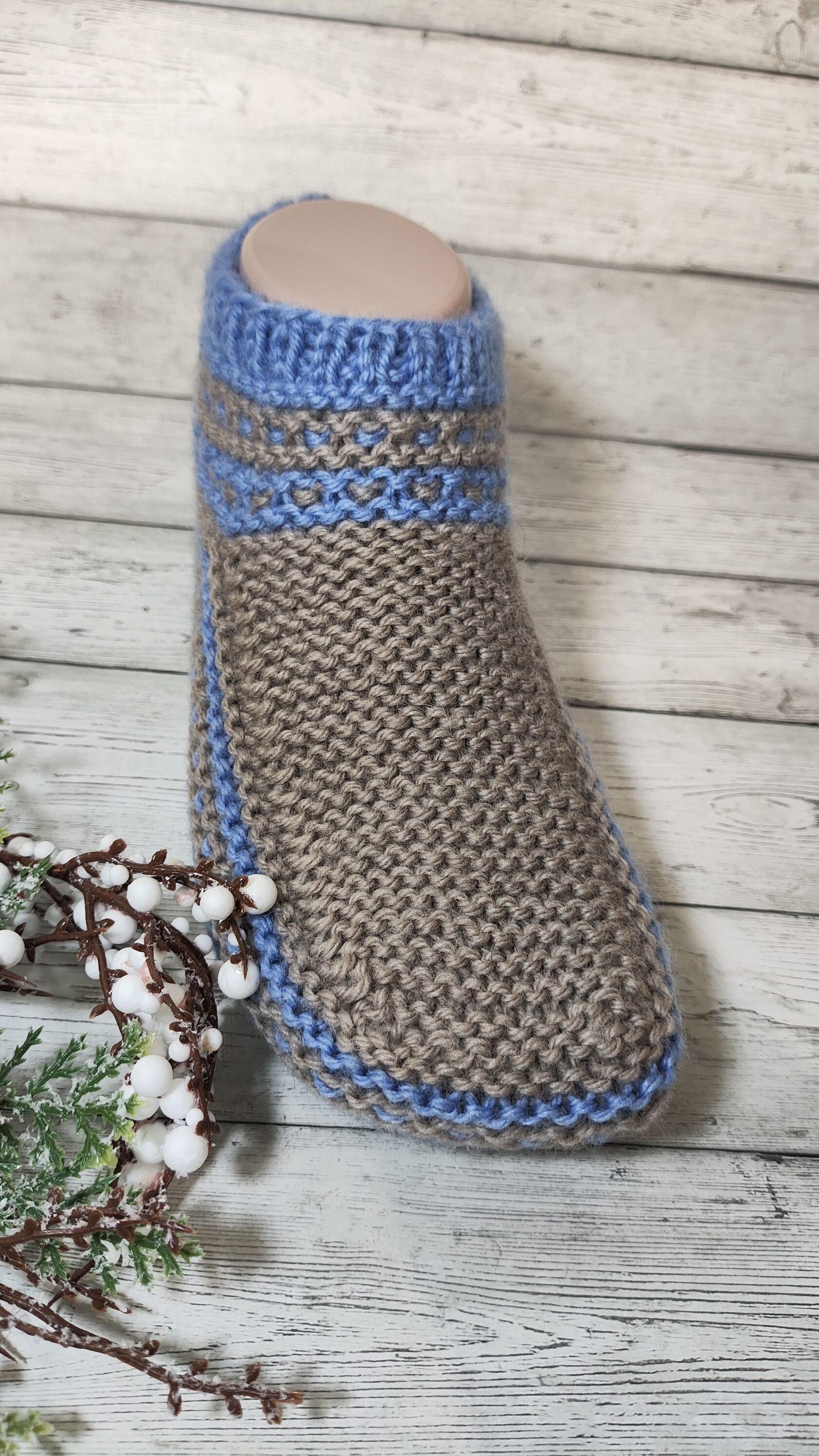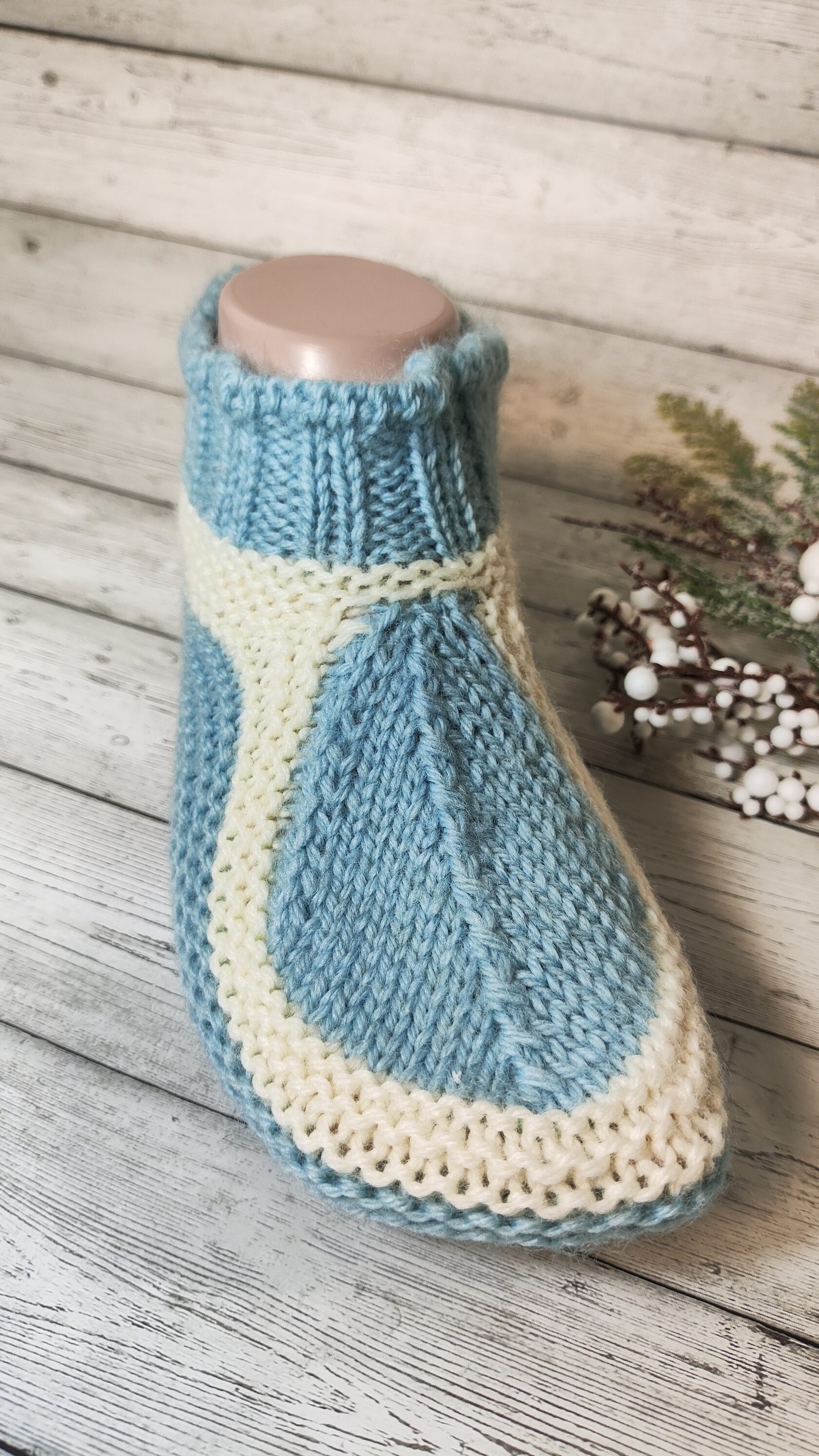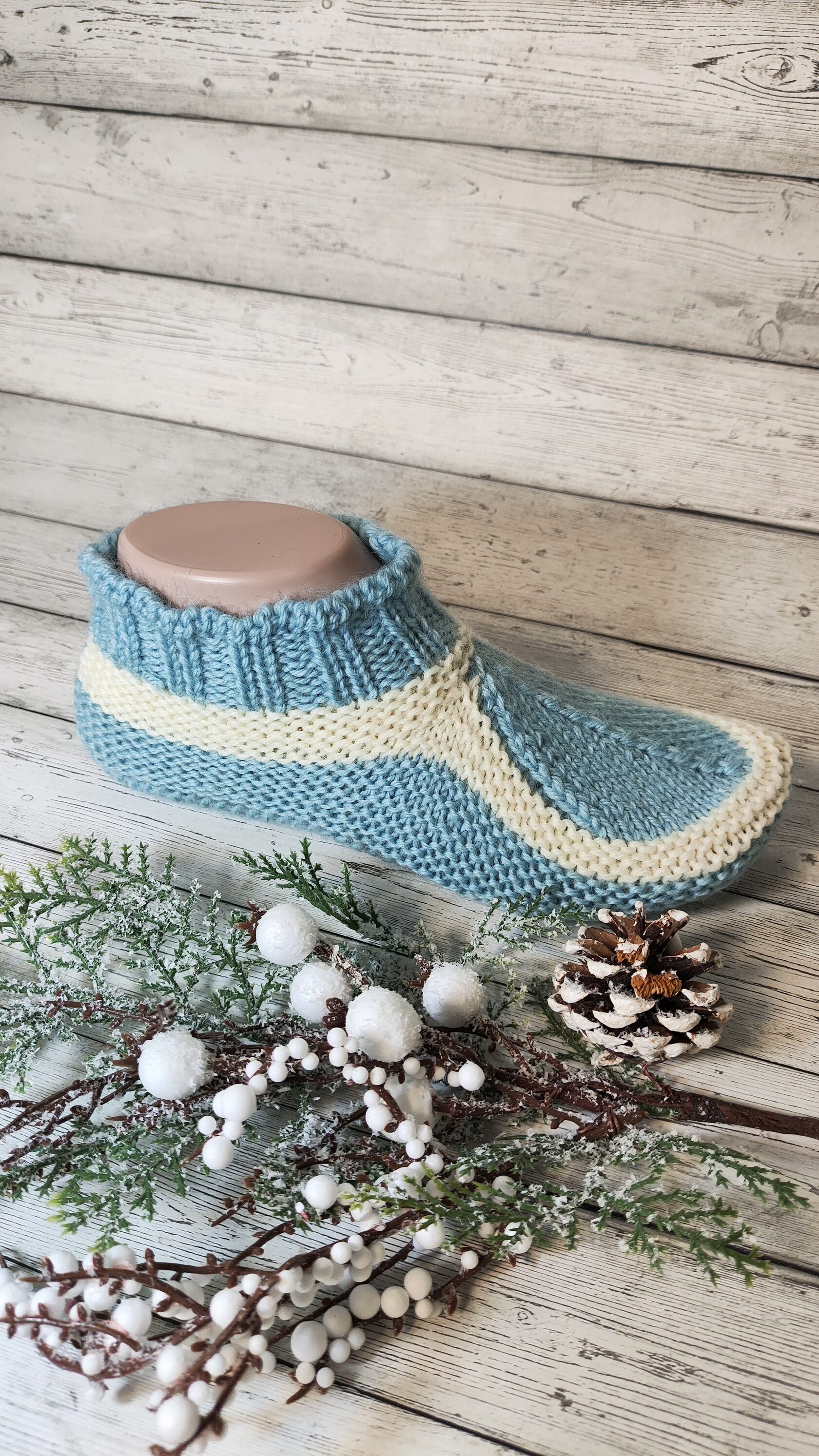 Уютные носочки-тапочки, которые можно носить дома. Благодаря мягкой пряже и удобной форме, носочки очень комфортны. Размер 38-39. Пряжа: производство Турция. Состав: 75% шерсть, 25% полиамид.