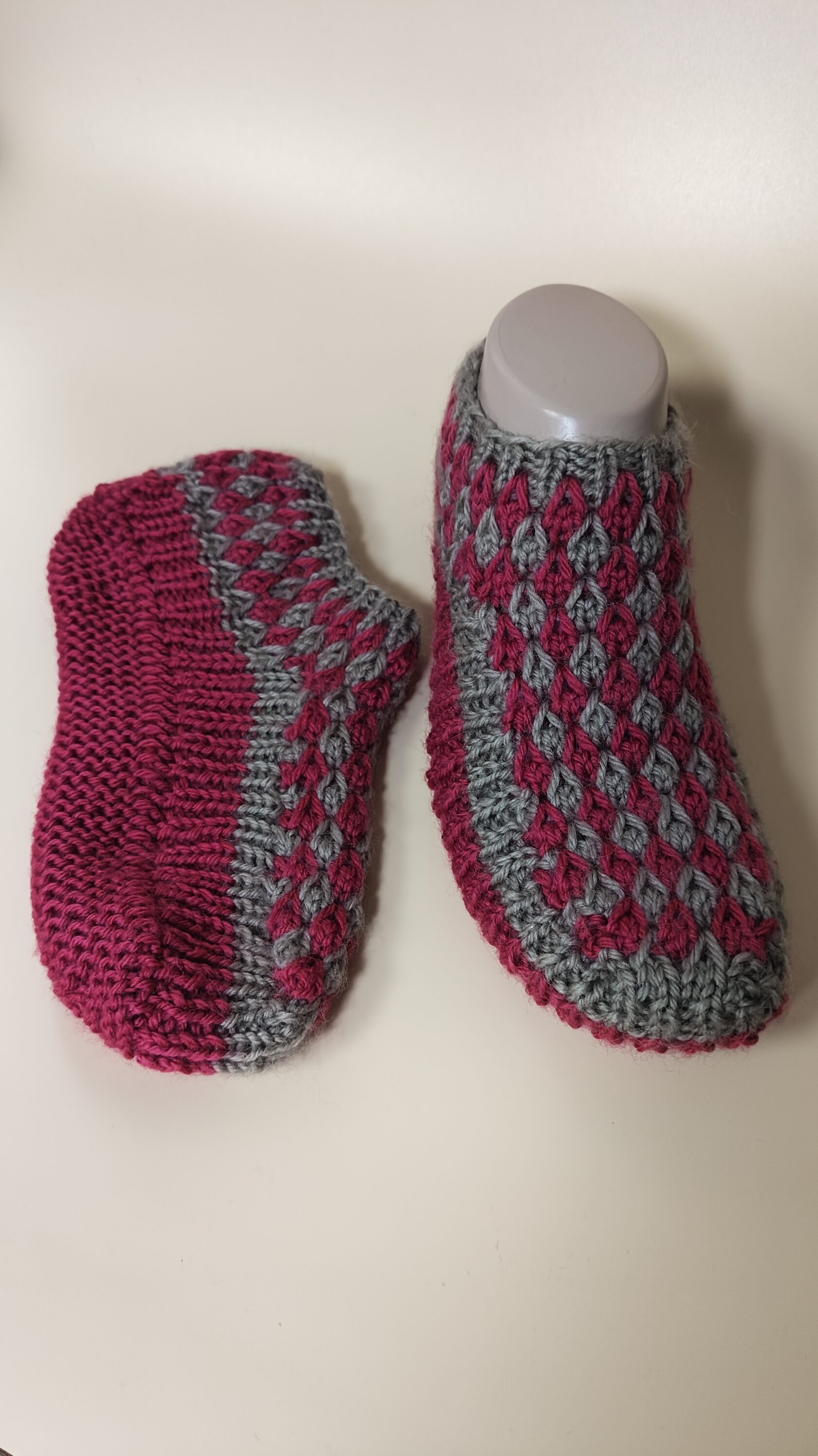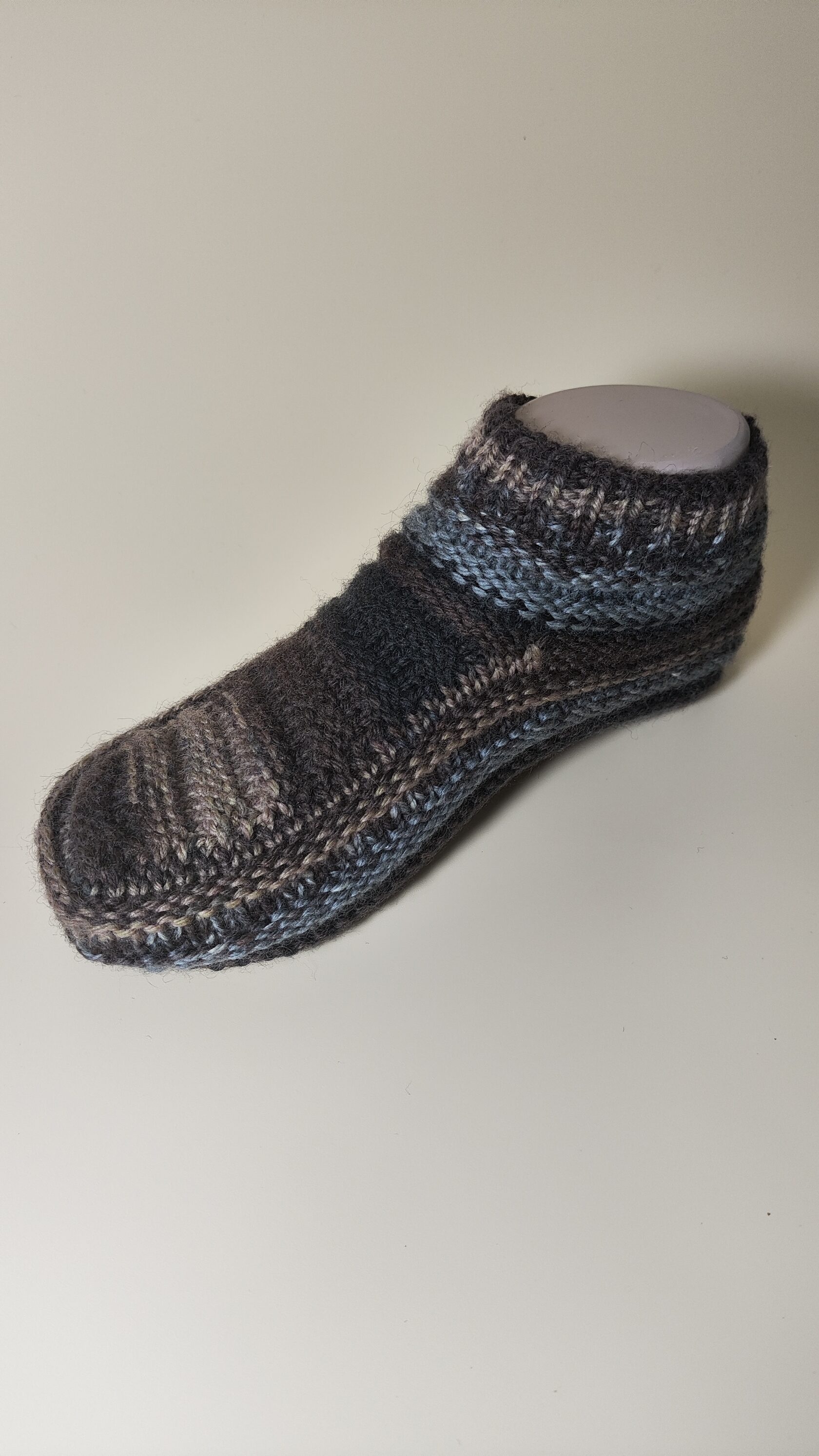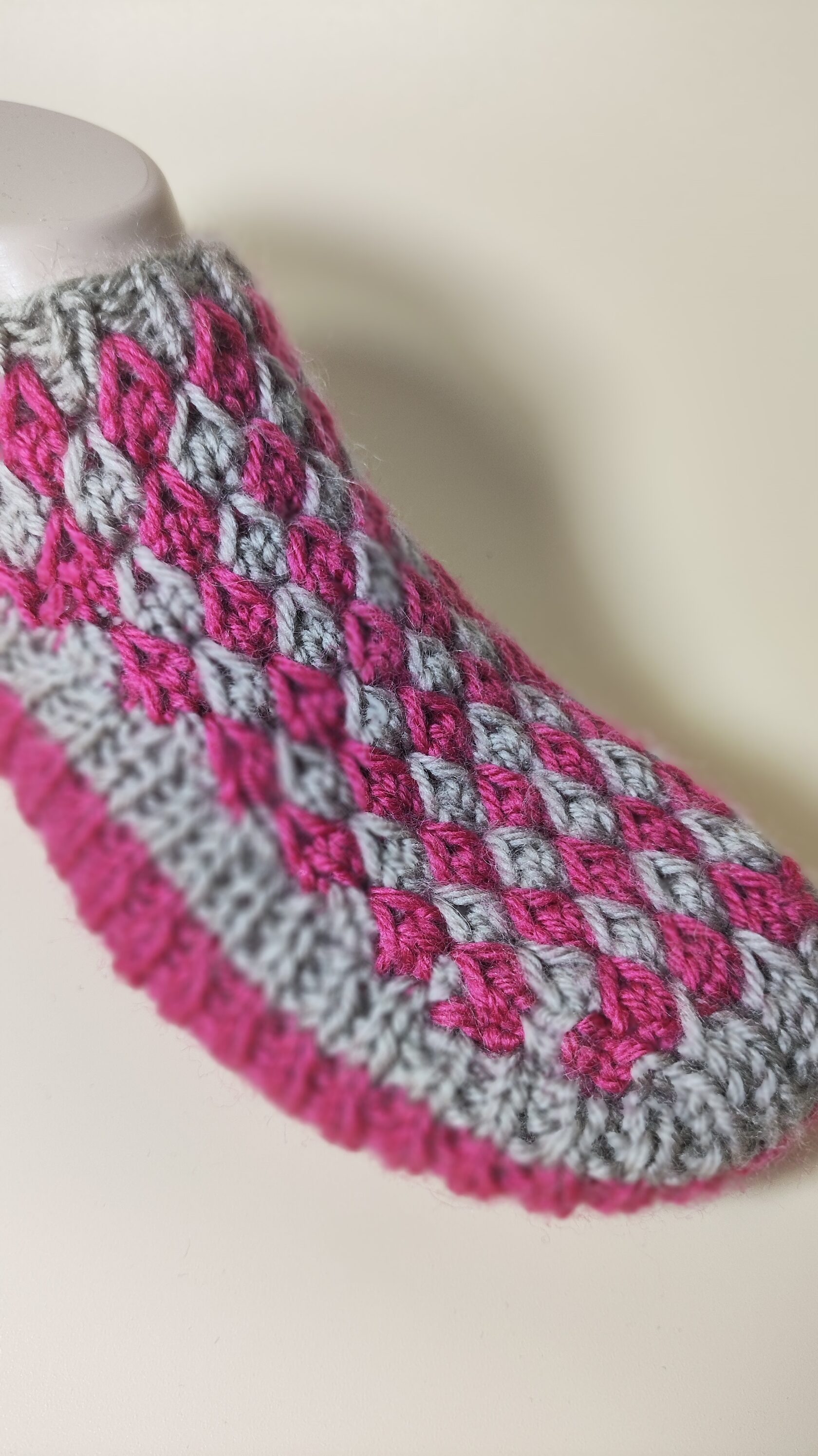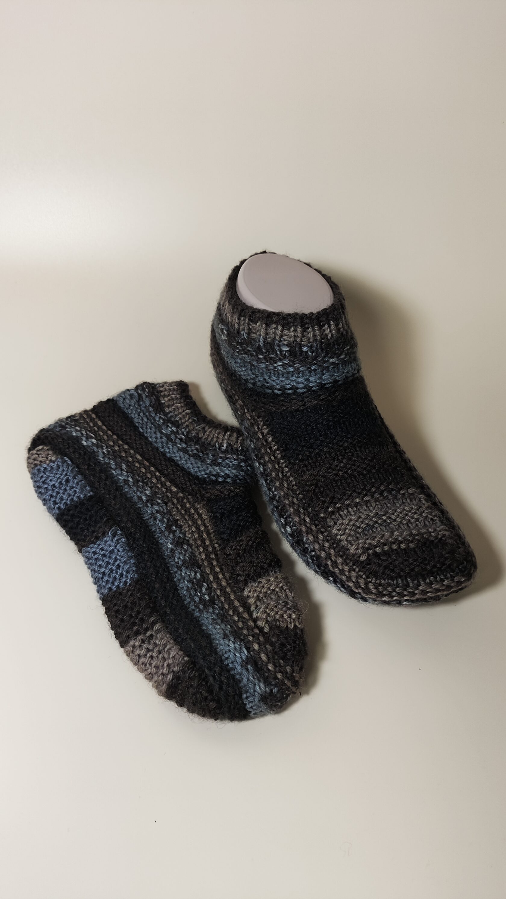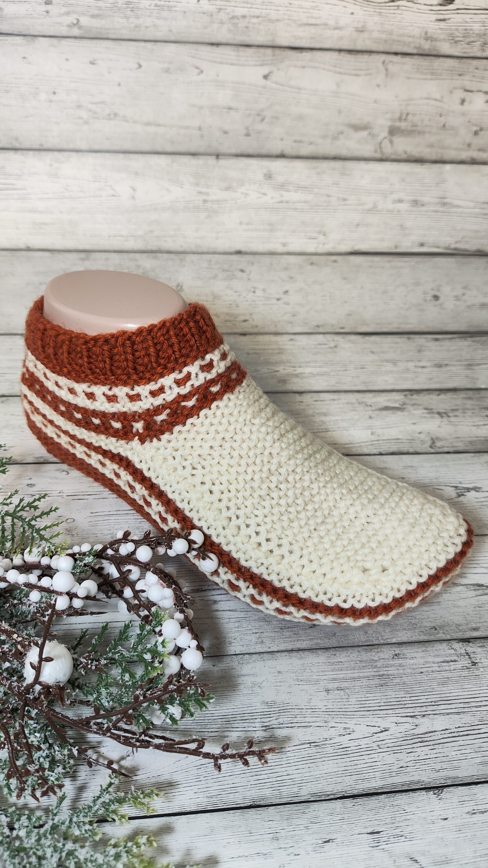 Уютные носочки-тапочки, которые можно носить дома. Благодаря мягкой пряже и удобной форме, носочки очень комфортны. Размер 38-39. Пряжа: производство Турция. Состав: 75% шерсть, 25% полиамид.