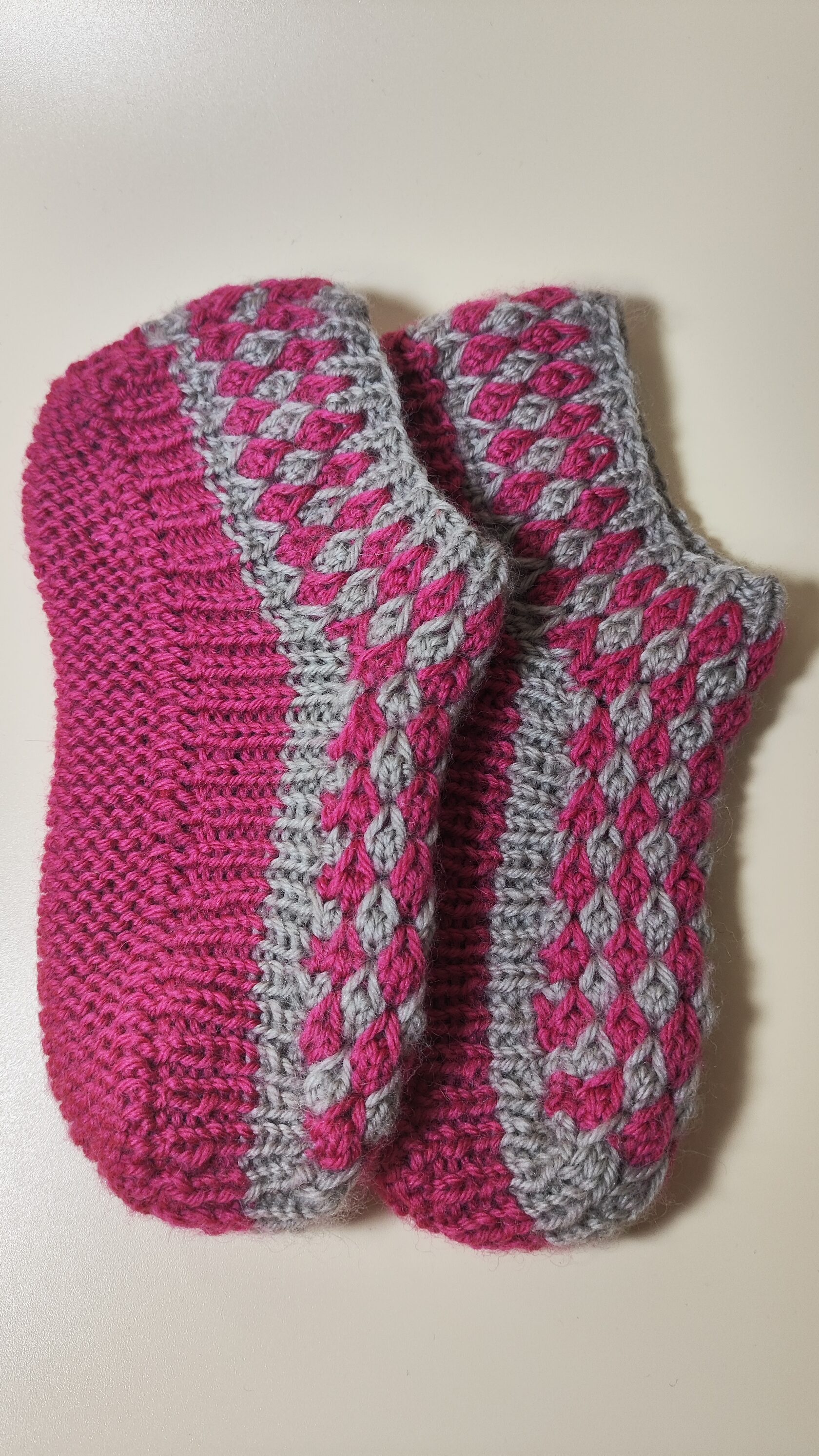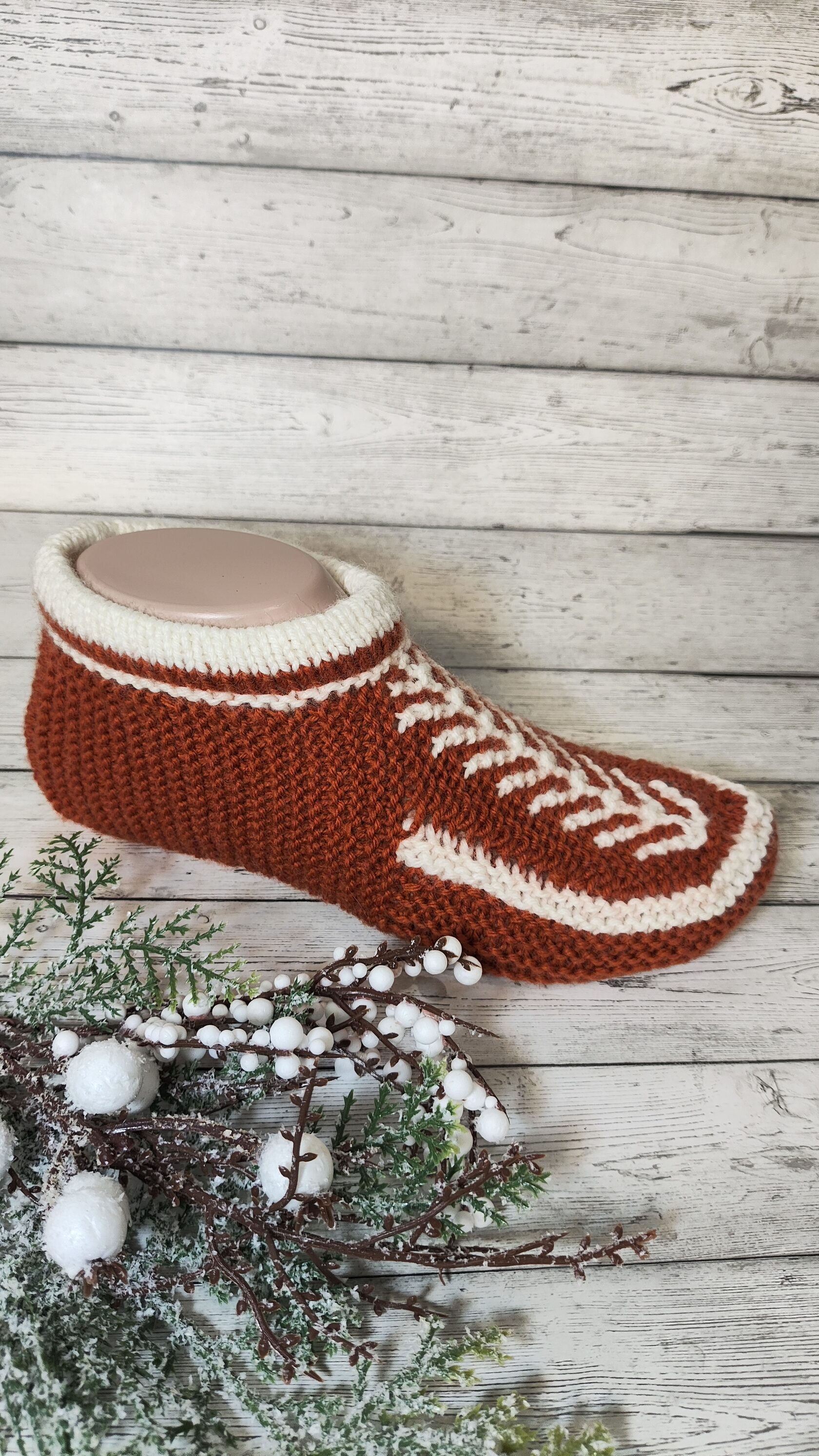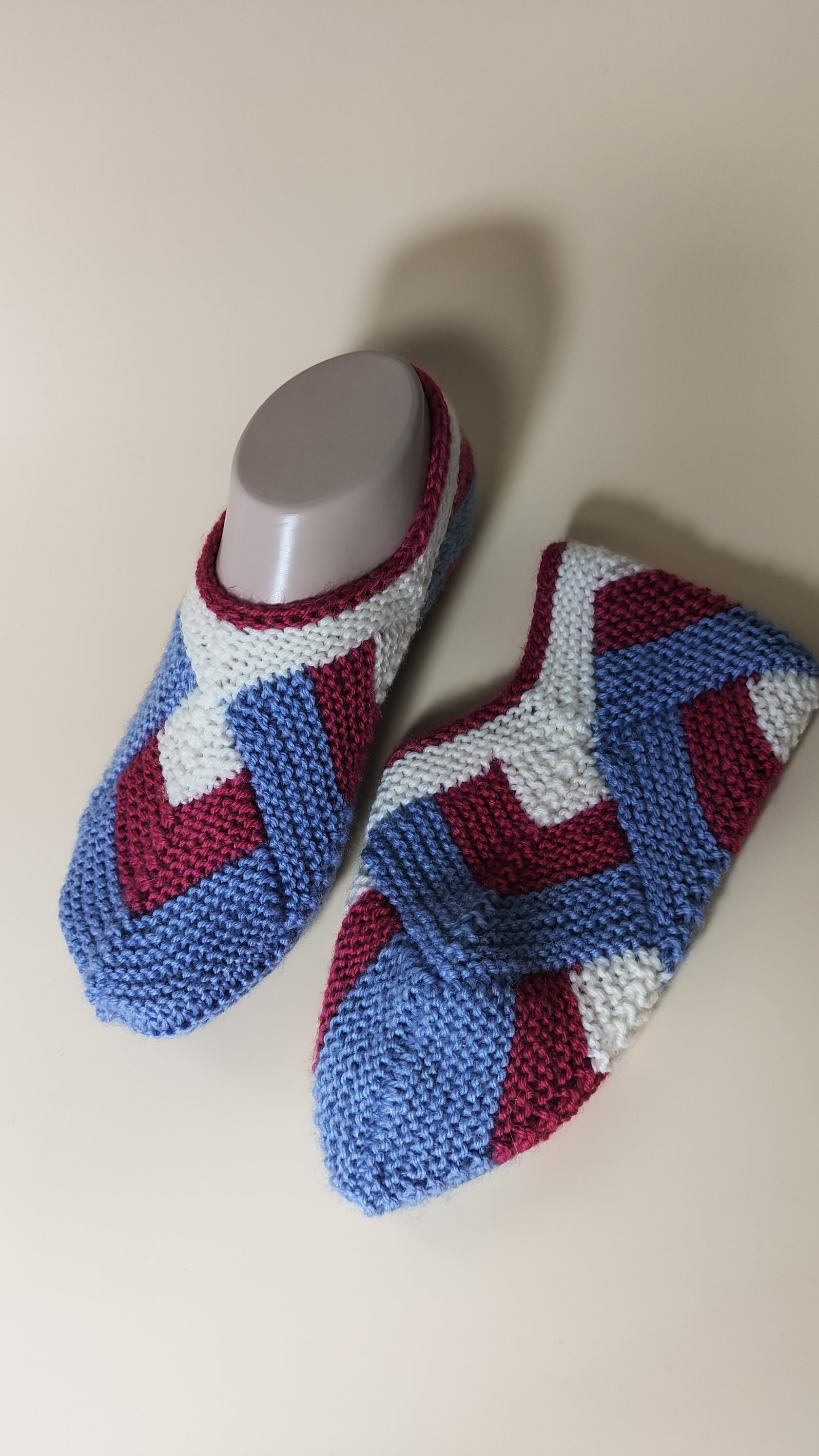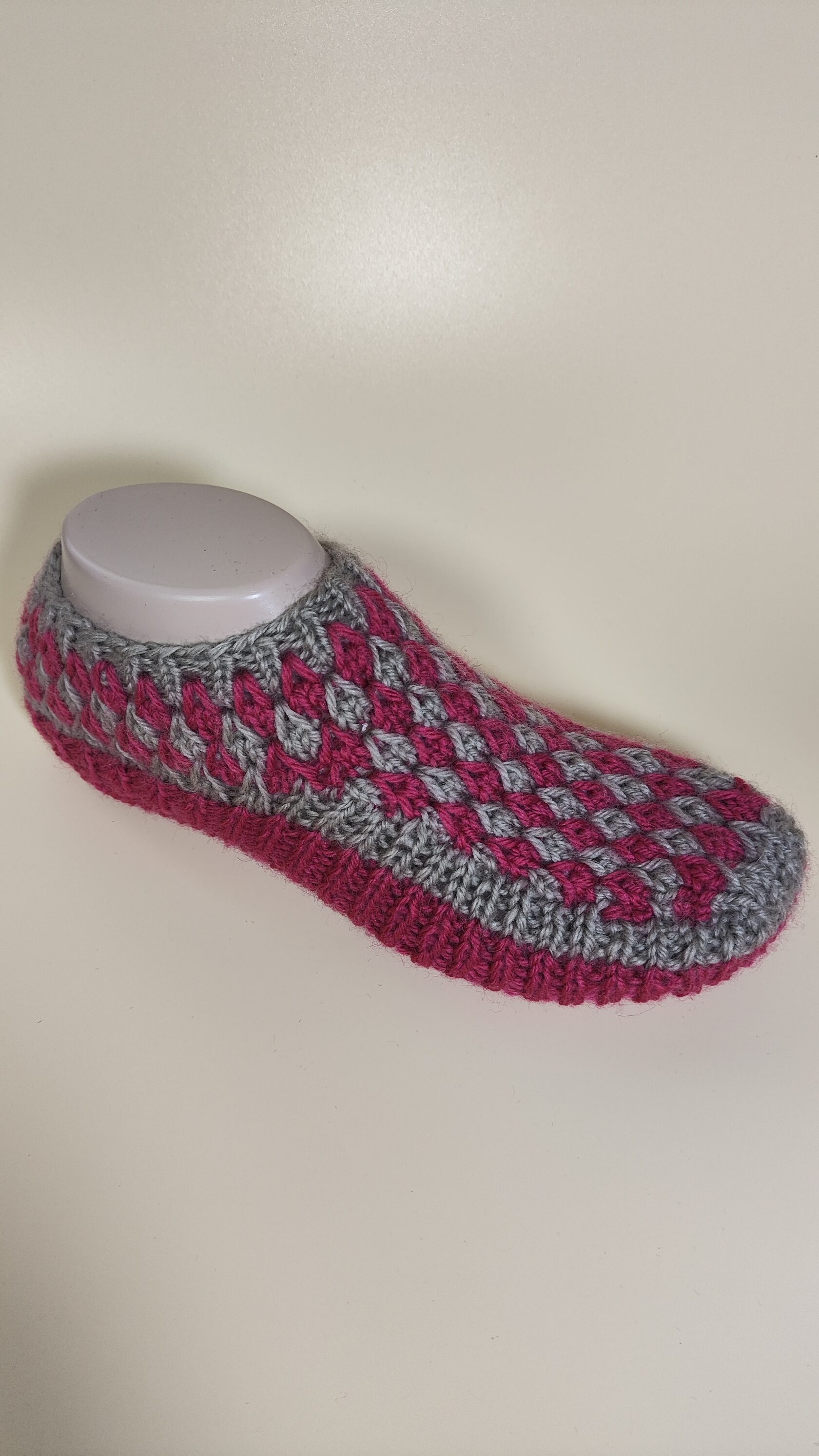 Уютные носочки-тапочки, которые можно носить дома. Благодаря мягкой пряже и удобной форме, носочки очень комфортны. Размер 38-39. Пряжа: производство Турция. Состав: 75% шерсть, 25% полиамид.
