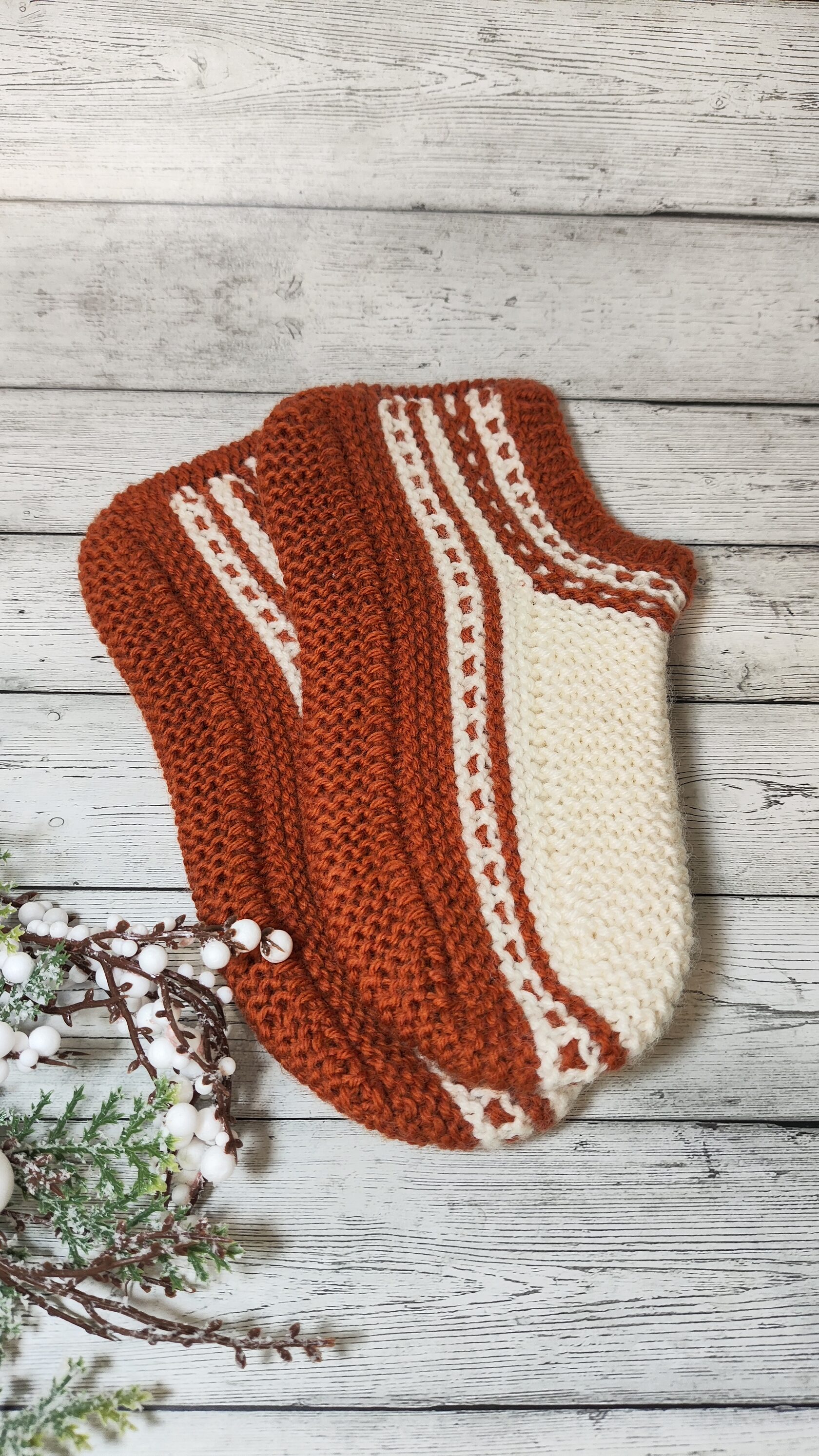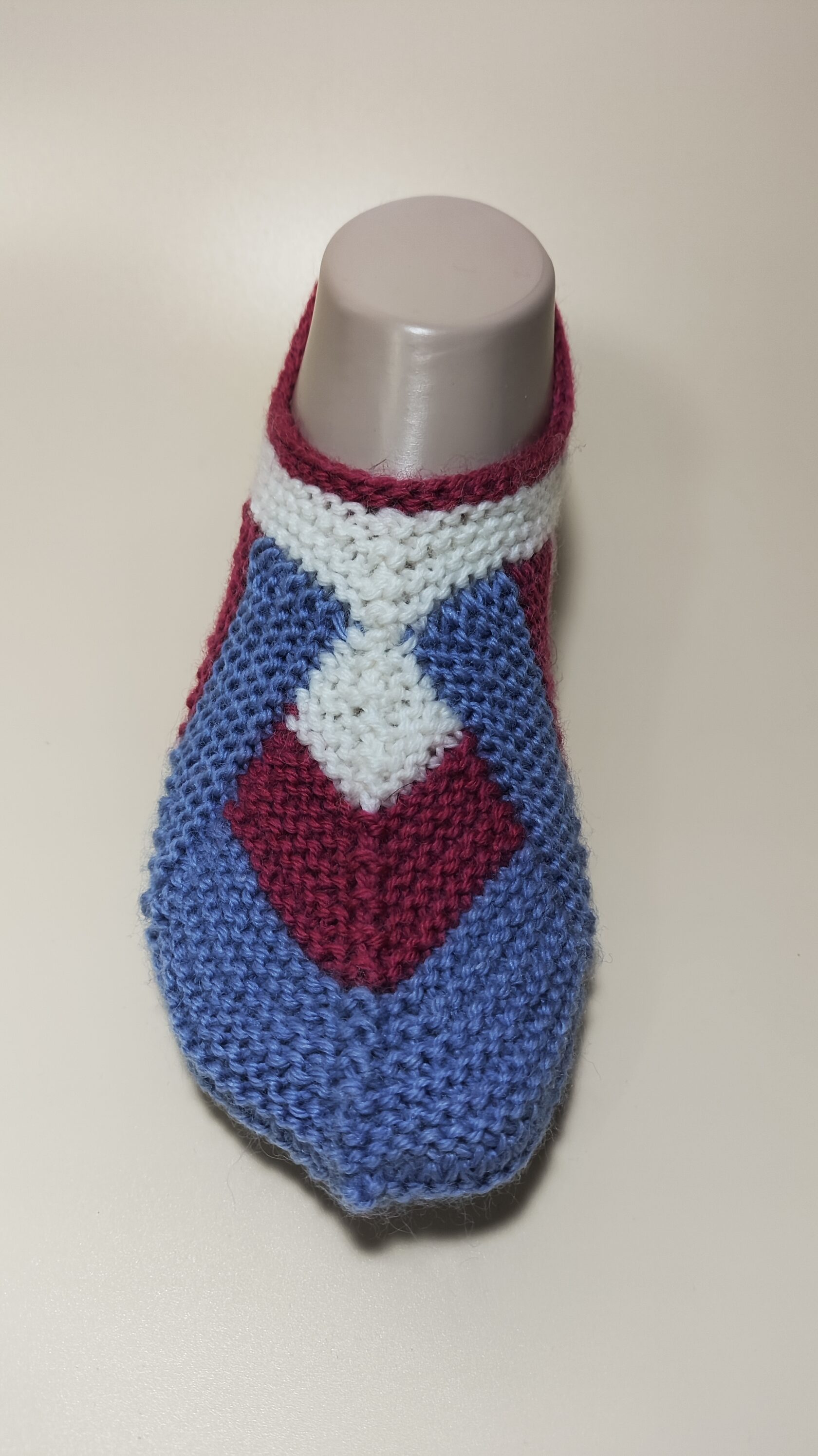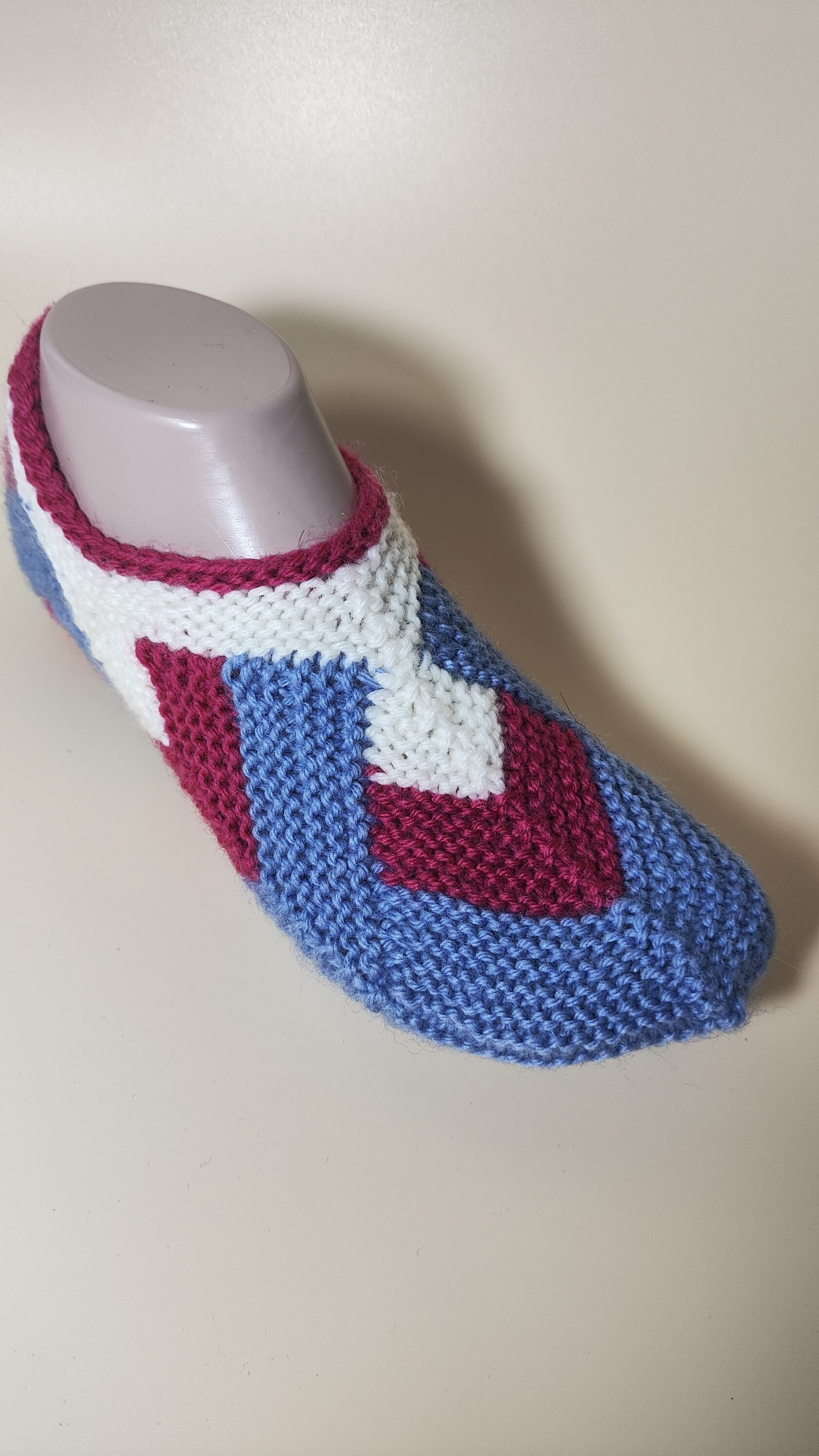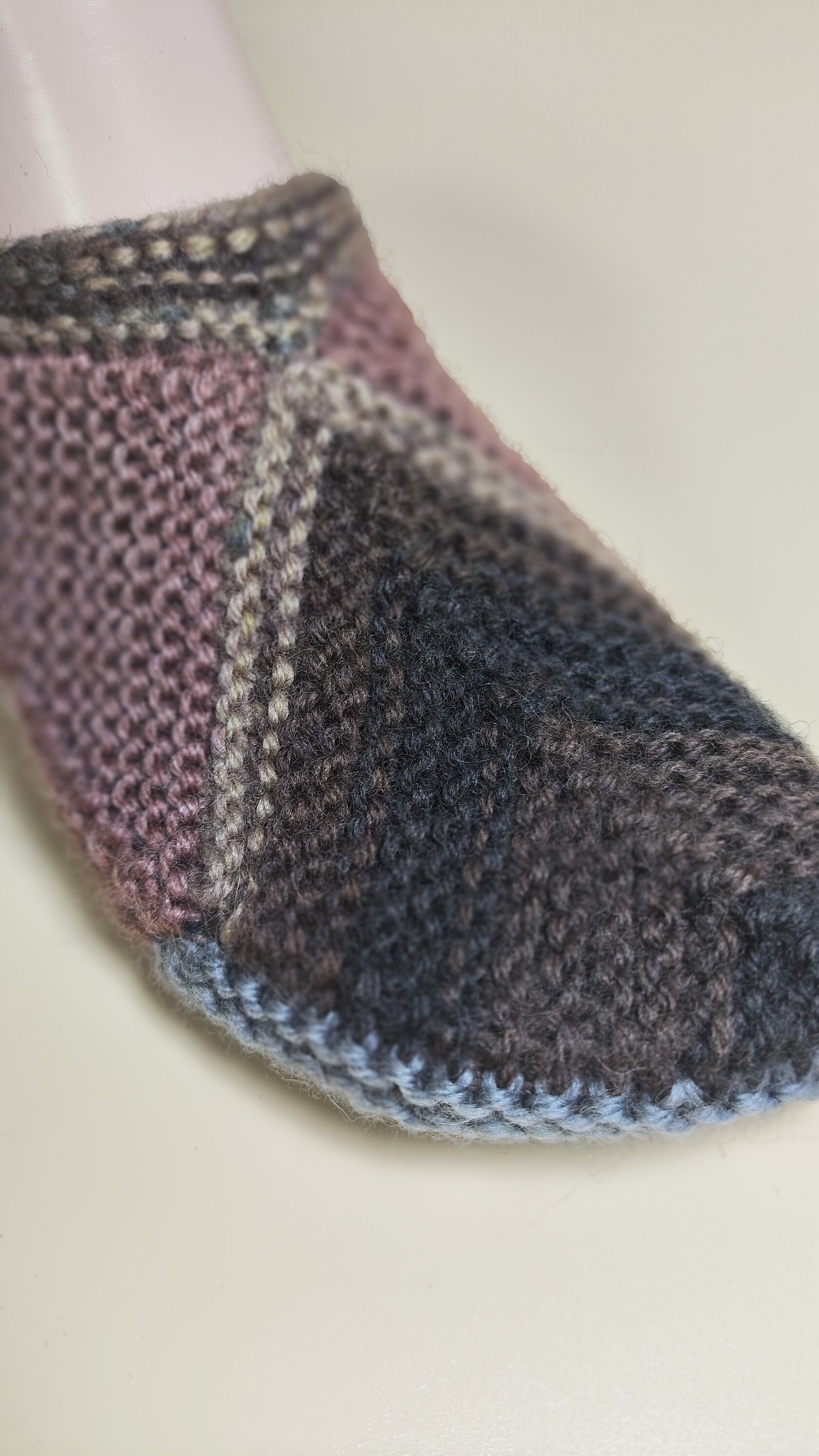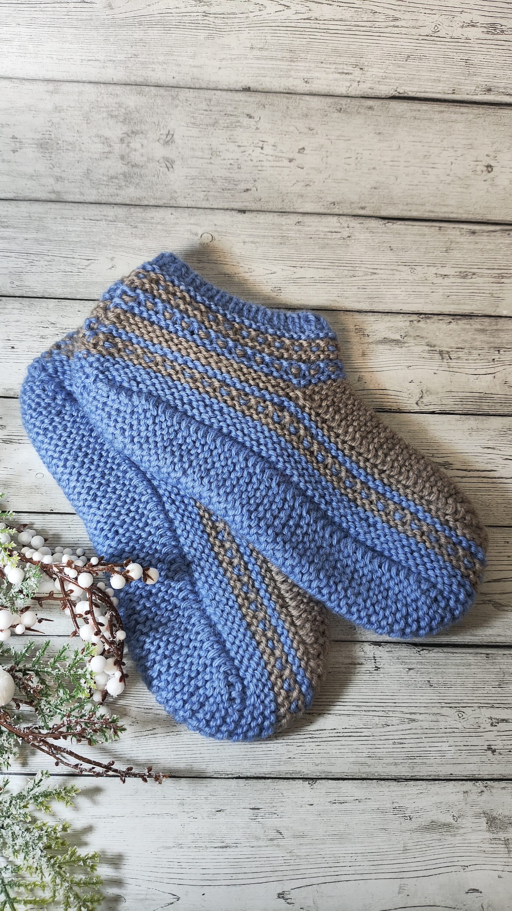 Уютные носочки-тапочки, которые можно носить дома. Благодаря мягкой пряже и удобной форме, носочки очень комфортны. Размер 38-39. Пряжа: производство Турция. Состав: 75% шерсть, 25% полиамид.