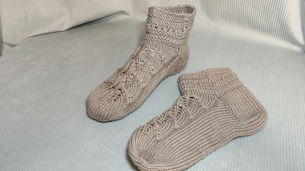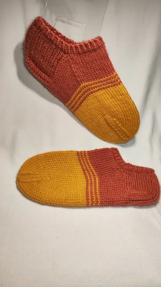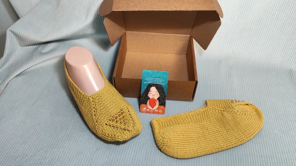 Уютные следки, которые можно носить дома. Благодаря мягкой пряже и удобной форме, носочки очень комфортны. Размер 38-39. Пряжа: производство Турция. Состав: 50% шерсть, 50% акрил. Упаковано в подарочную коробку.