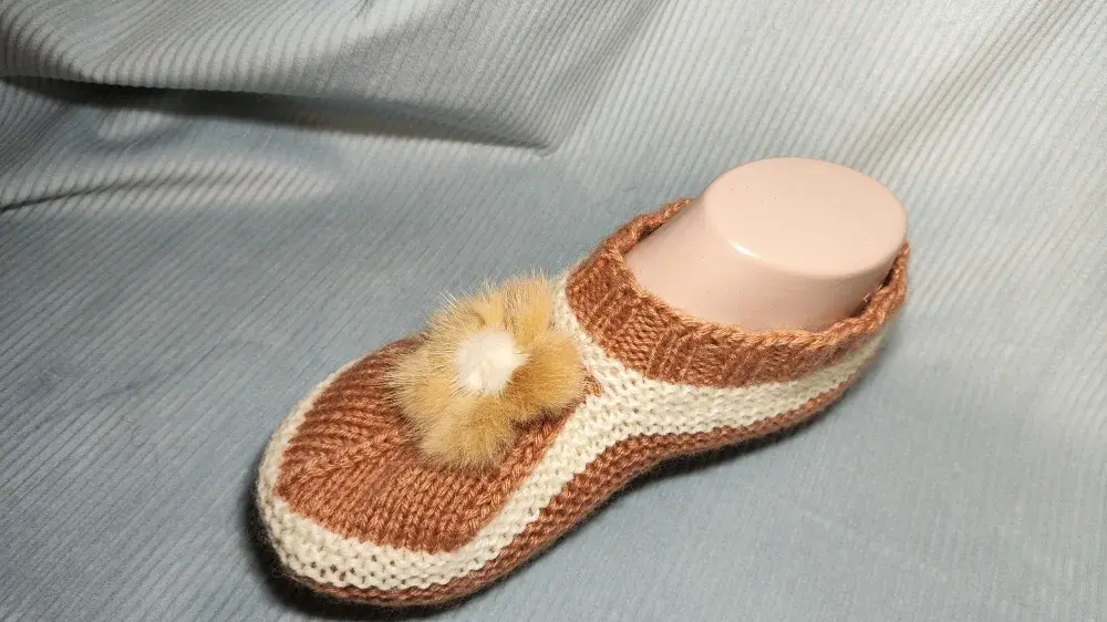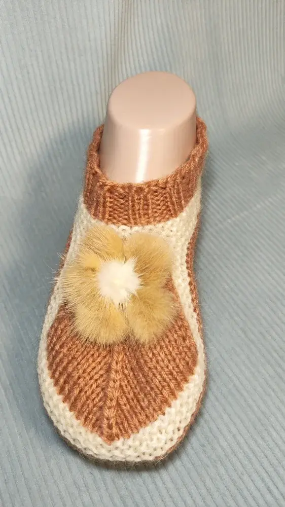 Эти носочки – это воплощение тепла и домашнего уюта, созданные вручную с любовью и заботой. Связанные с использованием качественной пряжи, они подарят вашим ногам невероятный комфорт и согреют в прохладные дни. Носочки украшены съемными меховыми цветочками, которые добавляют им игривости и очарования. Размер 38-39. Пряжа: производство Турция. Состав: 75% шерсть, 25% полиамид. Упаковано в подарочную коробку.