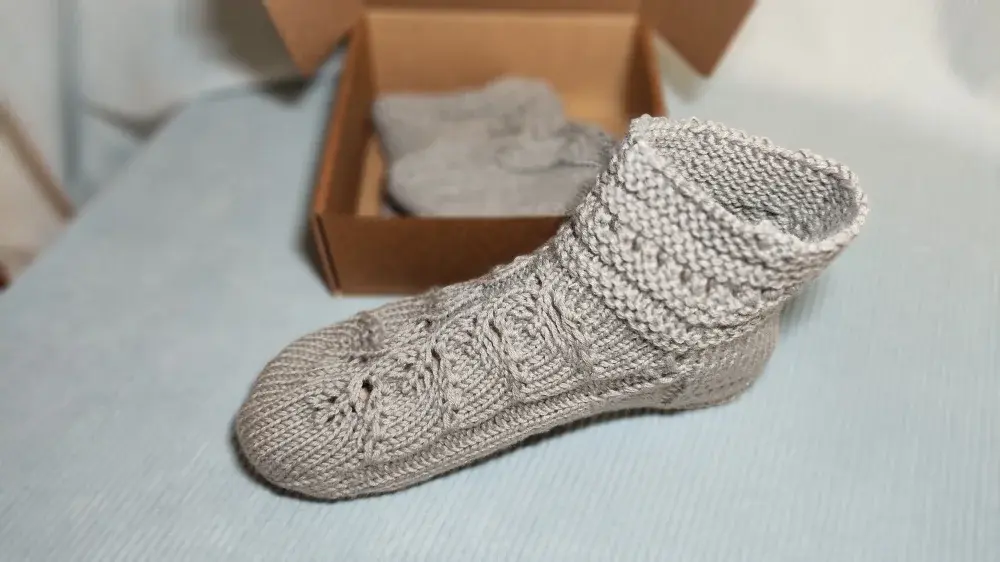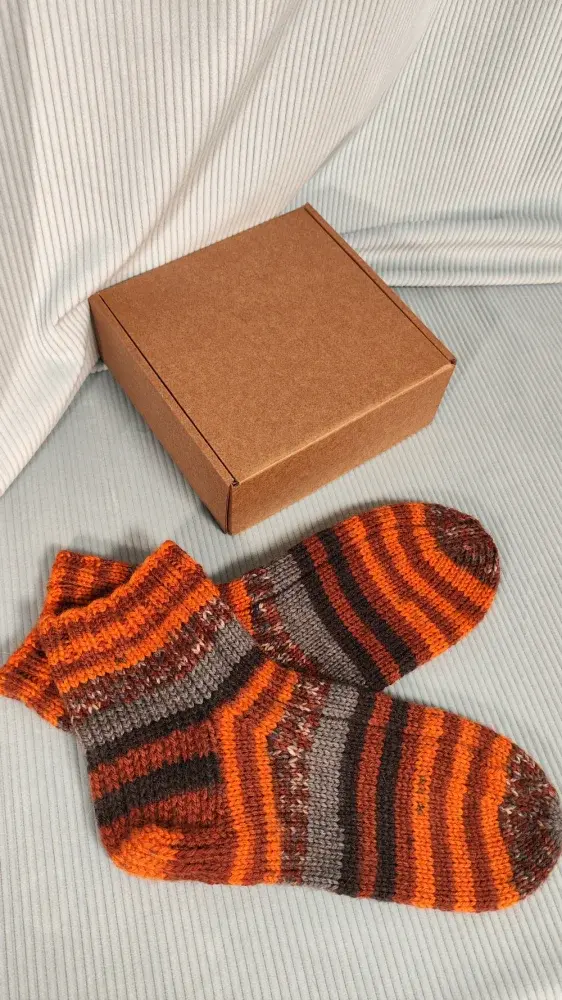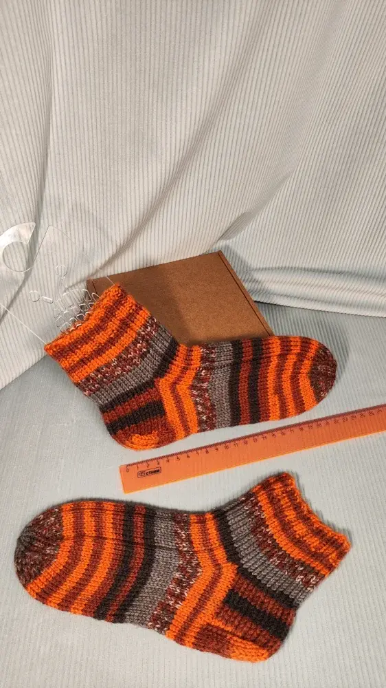 Носки женские, мягкие, приятные на ощупь и теплые. Размер 39-40. Пряжа: производство Турция. Состав: 50% шерсть, 50% полиамид. Упаковано в подарочную коробку.